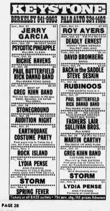Musicians Jerry Garcia - electric guitar, vocals John Kahn - electric bass John d'Fonseca - drums Ozzie Ahlers - keyboards