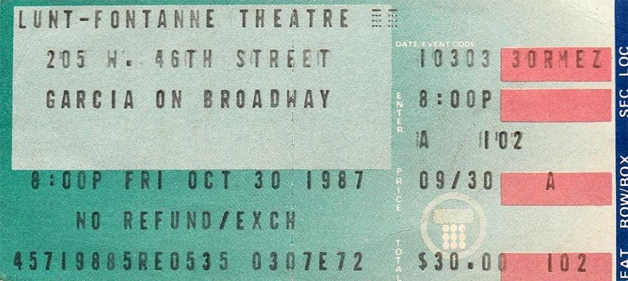 Gross $44,646.67 JGAB & JGB - Lunt-Fontanne Theatre October 1987 Also Appearing Jerry Garcia Band