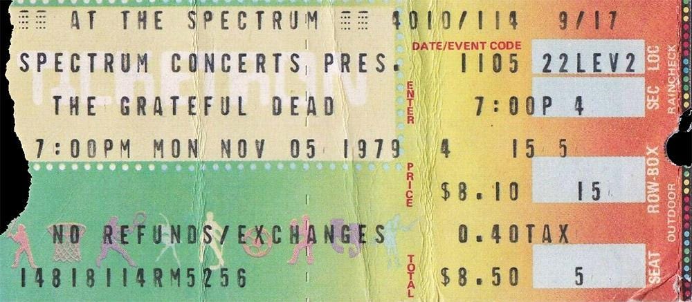 Complete Release Road Trips Full Show: Spectrum 11/5/79 Set 1: China Cat Sunflower > I Know You Rider , Cassidy , Friend Of The Devil , El Paso , Stagger Lee , Passenger , Peggy-O , The Music Never Stopped Set 2: Althea , Easy To Love You , Eyes Of The World > Estimated Prophet > Franklin's Tower > Jam > Drums > Space [1] > Lost Sailor > Saint Of Circumstance > Sugar Magnolia Encore: Casey Jones
