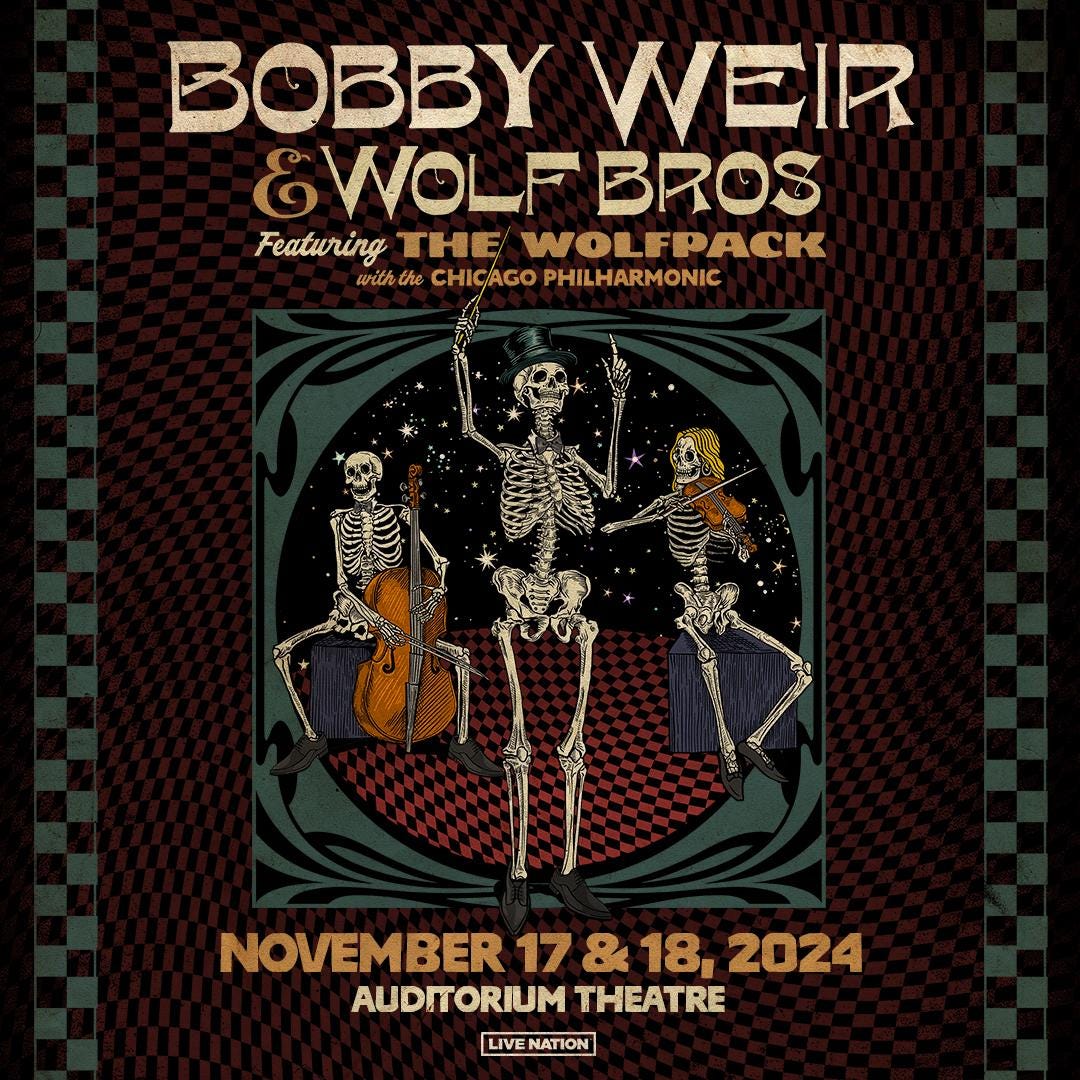 Wed, Nov 19, 2025 Bob Weir and The Wolf Bros w/ The Chicago Philharmonic 2024-11-19 Previous Post Grateful Dead 1972-11-18 [Sat] Hofheinz Pavilion, Houston, TX Next Post Bob Weir and Wolf Bros. 2018-11-19 Beacon Theatre, New York, NY