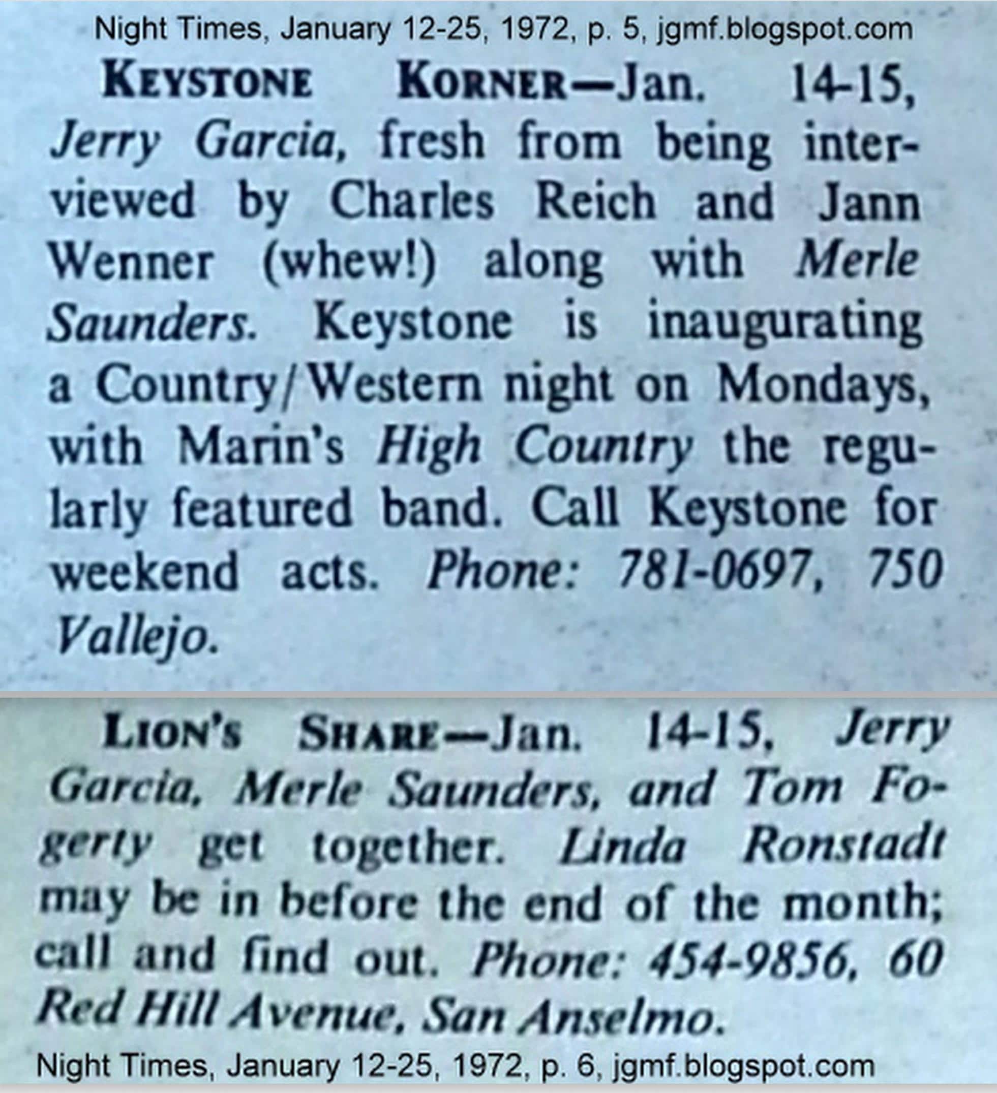 Musicians Jerry Garcia - electric guitar, vocals Bill Vitt - drums John Kahn - bass Merl Saunders - keyboards