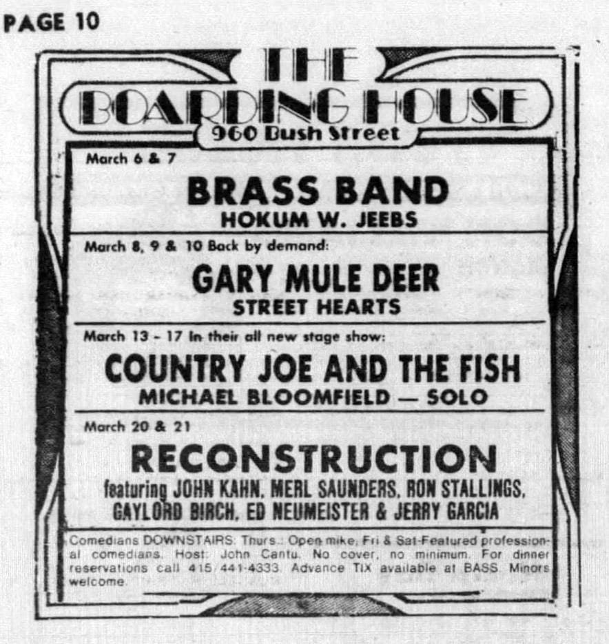 Musicians Jerry Garcia - electric guitar, vocals Ed Neumeister - trombone Gaylord Birch - drums, vocals John Kahn - electric bass Merl Saunders - keyboards, synthesizers, vocals Ron Stallings - saxophone, vocals