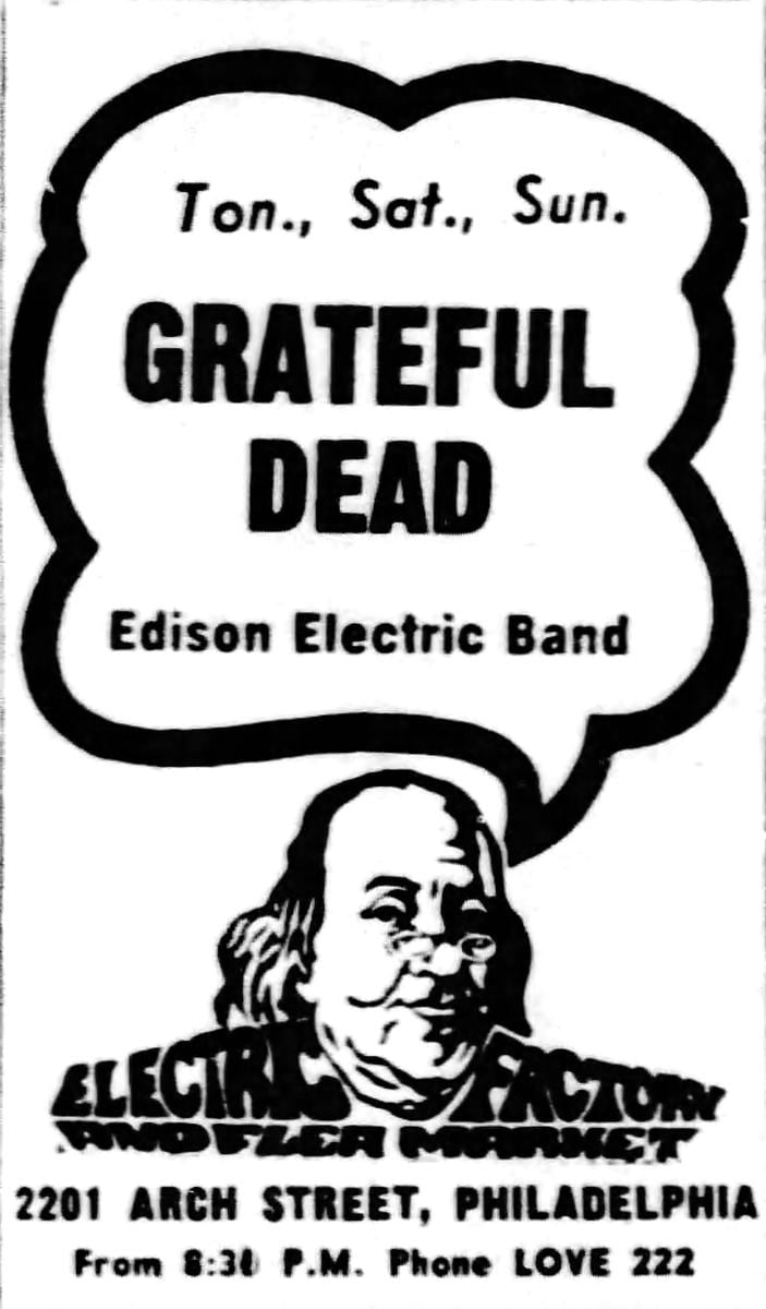 Musicians Jerry Garcia - electric guitar (lead), vocals Bill Kreutzmann - drums, perc Bob Weir - electric guitar (rhythm), vocals Mickey Hart - drums, perc Phil Lesh - electric bass, vocals Ron McKernan - organ, vocals Also Appearing Edison Electric Band, Necrophilanthropy (per newspaper listing), The Amboy Dukes (per poster), and The Amazing Beymont (per poster)