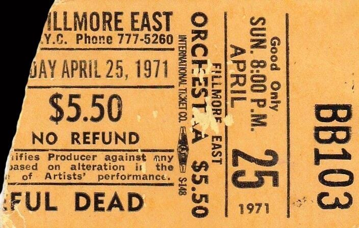 [1] Released on Enjoying the Ride [2] Released on The Music Never Stopped [3] Released on Ladies and Gentlemen... the Grateful Dead [4] Proceeded by a Spanish Jam tuning